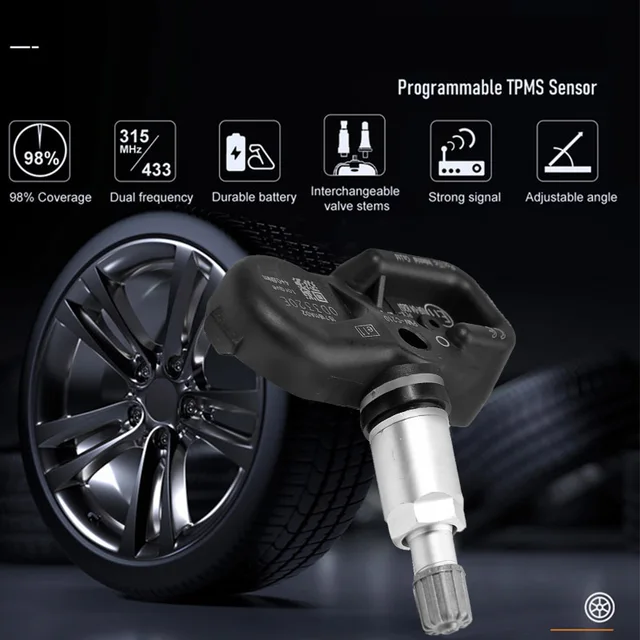 Este sensor de monitorización de presión de neumáticos (para TPMS) ha sido fabricado para combinar aplicaciones de 315 MHz y 433 MHz en un sensor para facilitar la gestión del inventario y reducir la inversión y pérdidas de ventas. Y está diseñado para funcionar como sensores OE en términos de señal, durabilidad y funcionalidad.
