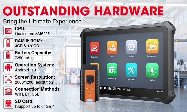 El escáner de diagnóstico automotriz avanzado OTOFIX D1 MAX es una herramienta portátil todo en uno para todos los diagnósticos y servicios de automóviles. Puede ejecutar un escaneo profesional del sistema completo de grado OE para diagnosticar el estado de funcionamiento de todos los sistemas, leer y borrar códigos, ver el flujo de datos en vivo de múltiples sensores en texto o gráfico, recupere la información de la E-CU, congele el fotograma. Puede ayudarlo a diagnosticar códigos de error más rápido y ayudarlo a resolver problemas más rápido.