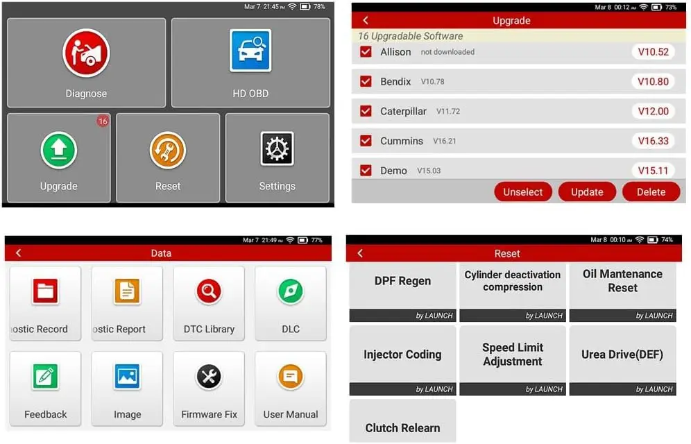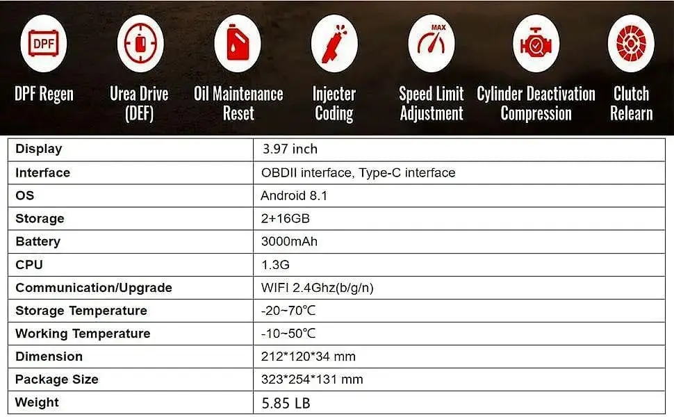 Regeneración D.P.F/Codificación de inyectores/Reinicio de aceite/Reinicio de límite de velocidad/Corte de cilindro/Prueba de compresión……